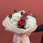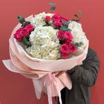 Гортензия - 3 шт. Эвкалипт - 1 шт. кустовые розы софия - 5 шт.