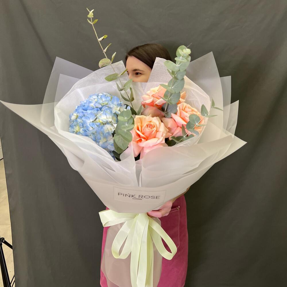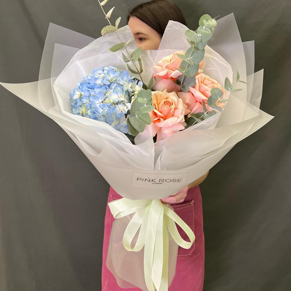 Гортензия - 1 шт. Эвкалипт - 4 шт. Роза премиум - 3 шт.
