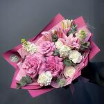 Гвоздика - 4 шт. Роза пионовидная - 3 шт. маттиолы - 3 шт. лилия королевская - 1 шт.