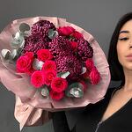 Эвкалипт - 1 шт. Спрей роза - 5 шт. хризантема бигуди - 5 шт.