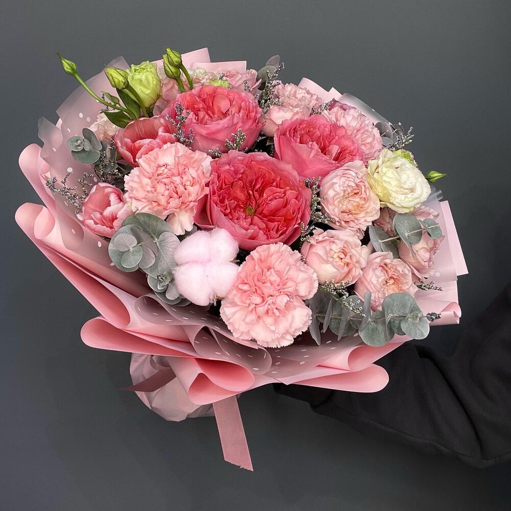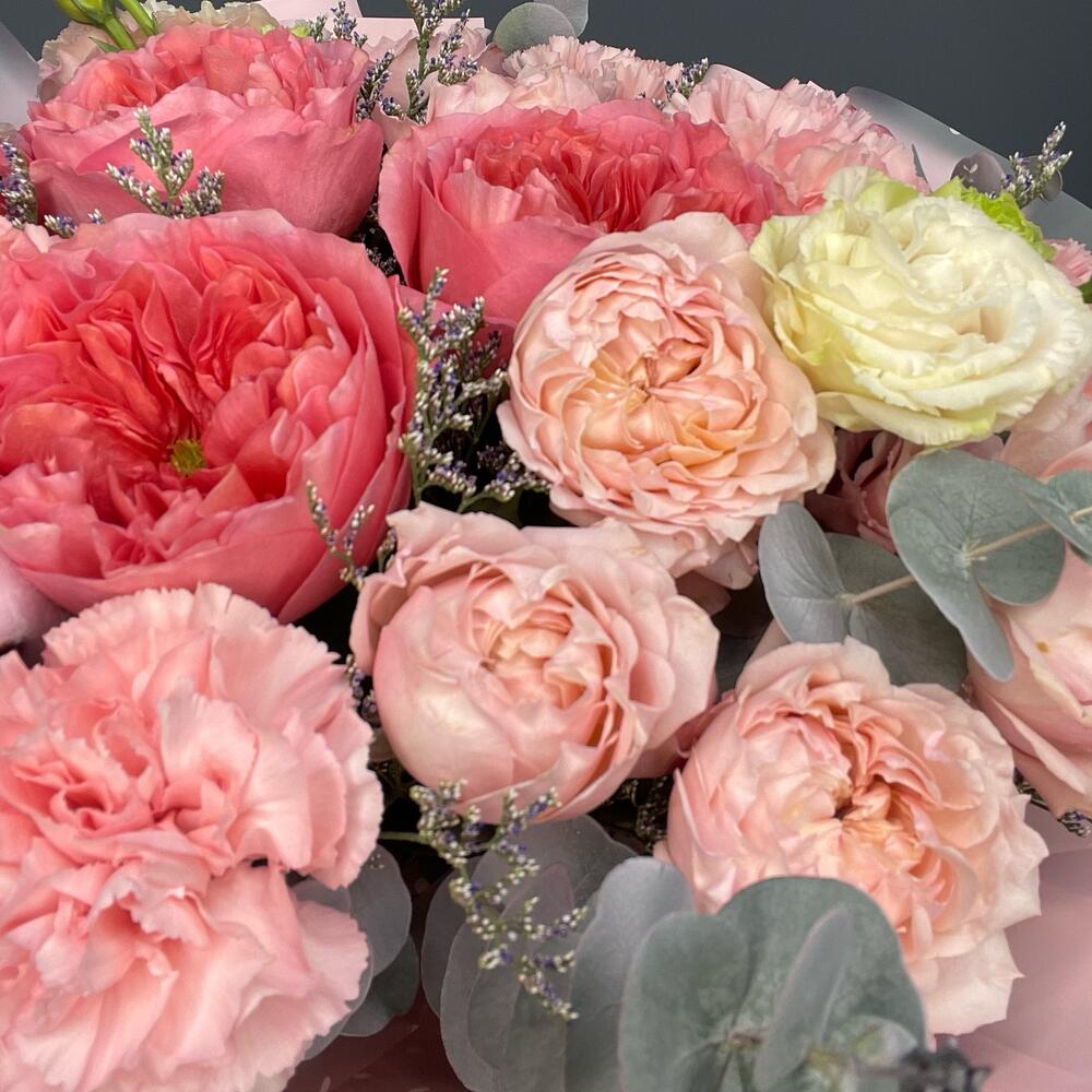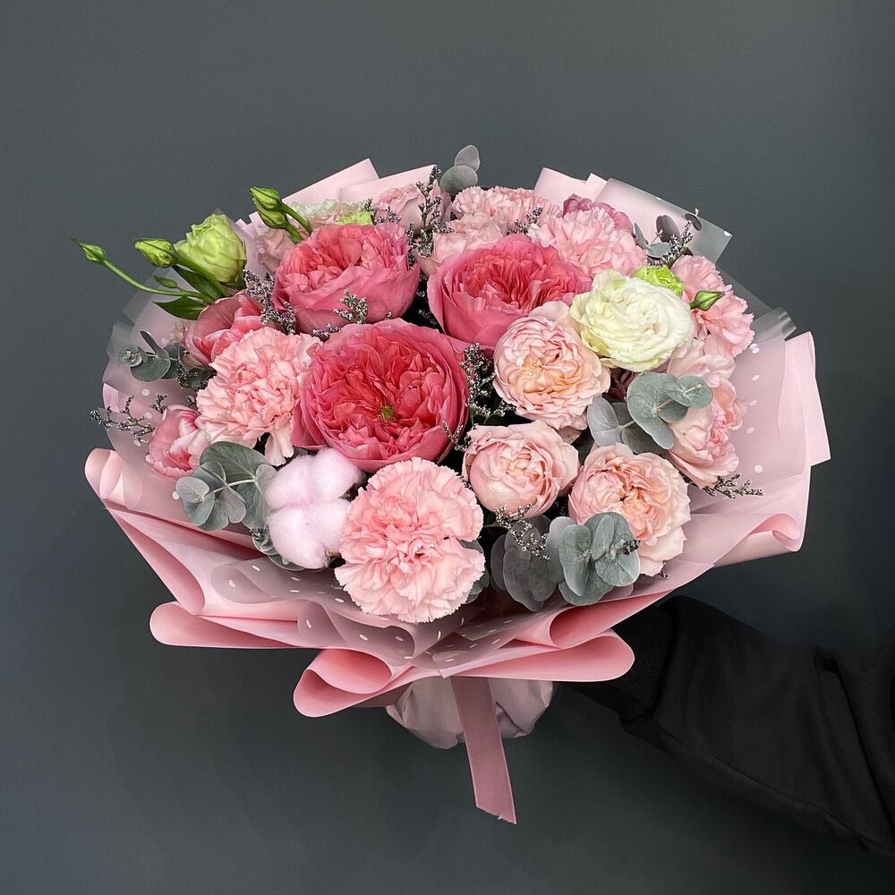 Эустома - 3 шт. Диантус - 5 шт. джульетта роза пионовидная - 3 шт. pink expresion - 3 шт.