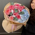 Гортензия - 1 шт. Эвкалипт - 2 шт. Роза пионовидная - 11 шт. Оформление - 1 шт.