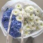 Хризантема - 4 шт. синие гортензии - 2 шт.