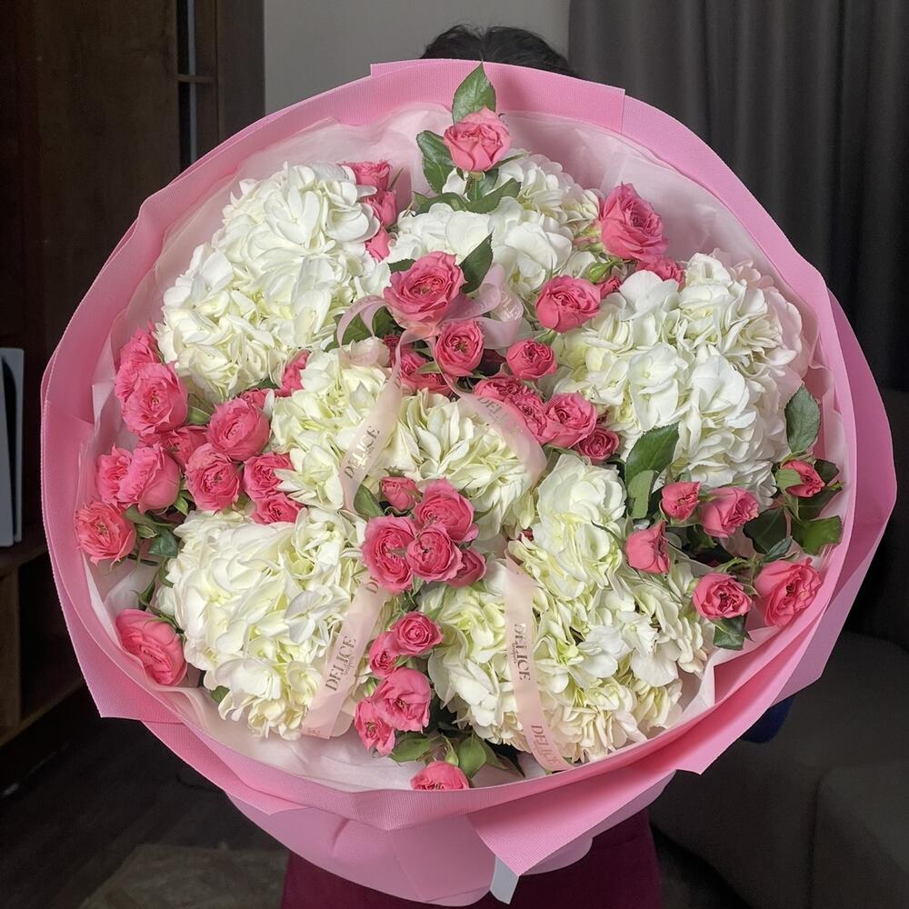 белые гортензии - 6 шт. спрей розы софия - 9 шт.