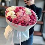 Этот авторский букет является совершенством в миниатюре. Он состоит из пяти живописных гортензий в сопровождении одиннадцати изысканных пионовидных роз. Царственные кустовые пионовидные розы, штук девять, добавляют букету невероятной пышности и объема. Его нежная комбинация волнует воображение и заставляет сердце замирать от восторга. Этот букет станет идеальным подарком для самых требовательных ценителей красоты.