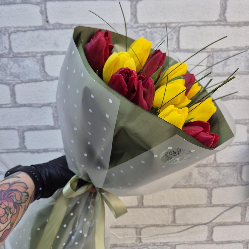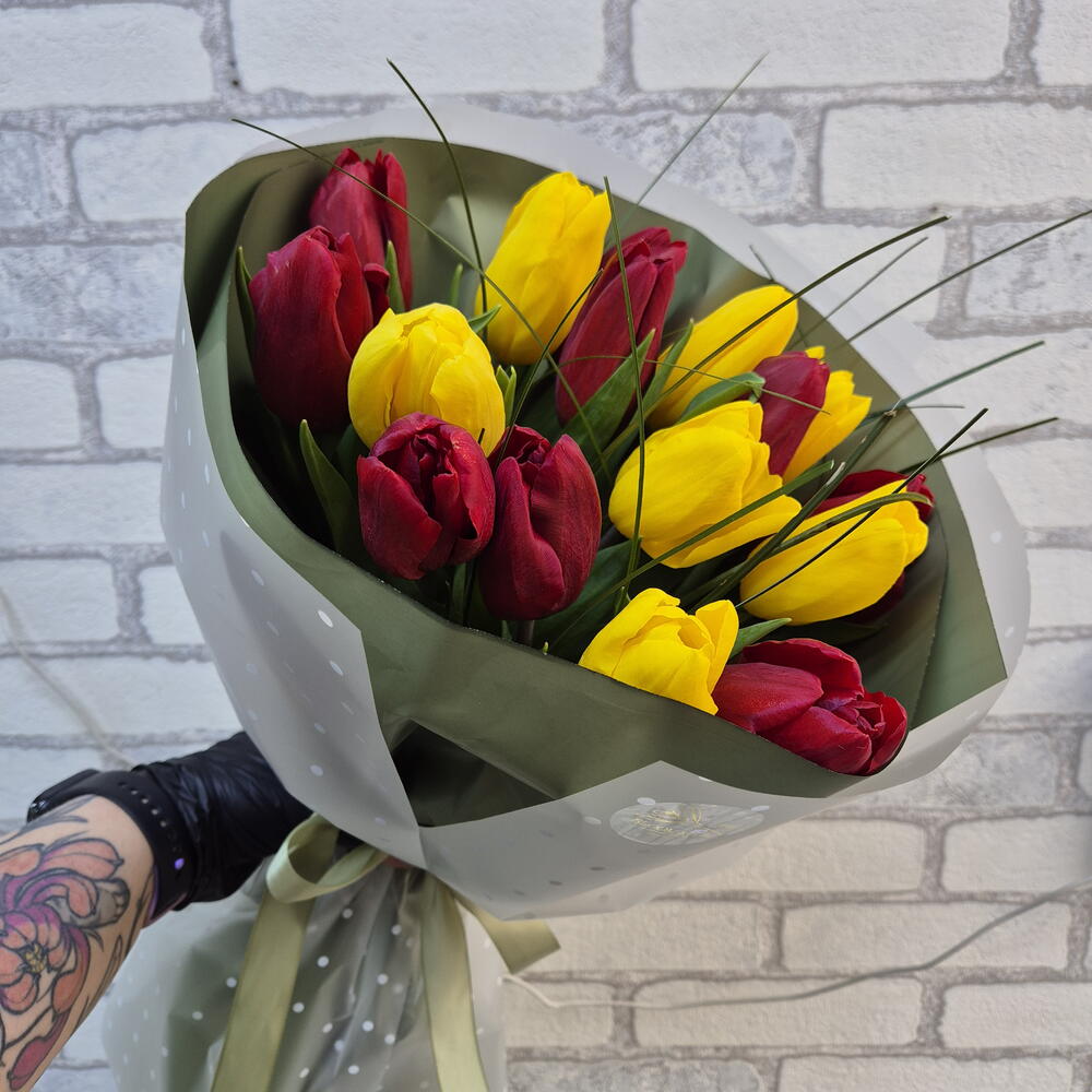 Тюльпан - 15 шт. Упаковка - 2 шт. Упаковка дизайнерская - 2 шт. Берграсс пучок - 20 шт.