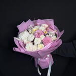 Этот изысканный авторский букет объединяет в себе тонкую элегантность альстромерии и роскошь хризантем различных видов. Невероятно роскошная бигуди хризантема придаёт всему композиции уникальный шарм и неординарность. Цветочное творение, представленное в этом букете, задумано как символ утонченности и изящества. Этот букет станет прекрасным подарком, воплощающим в себе настоящую гармонию красоты природы.