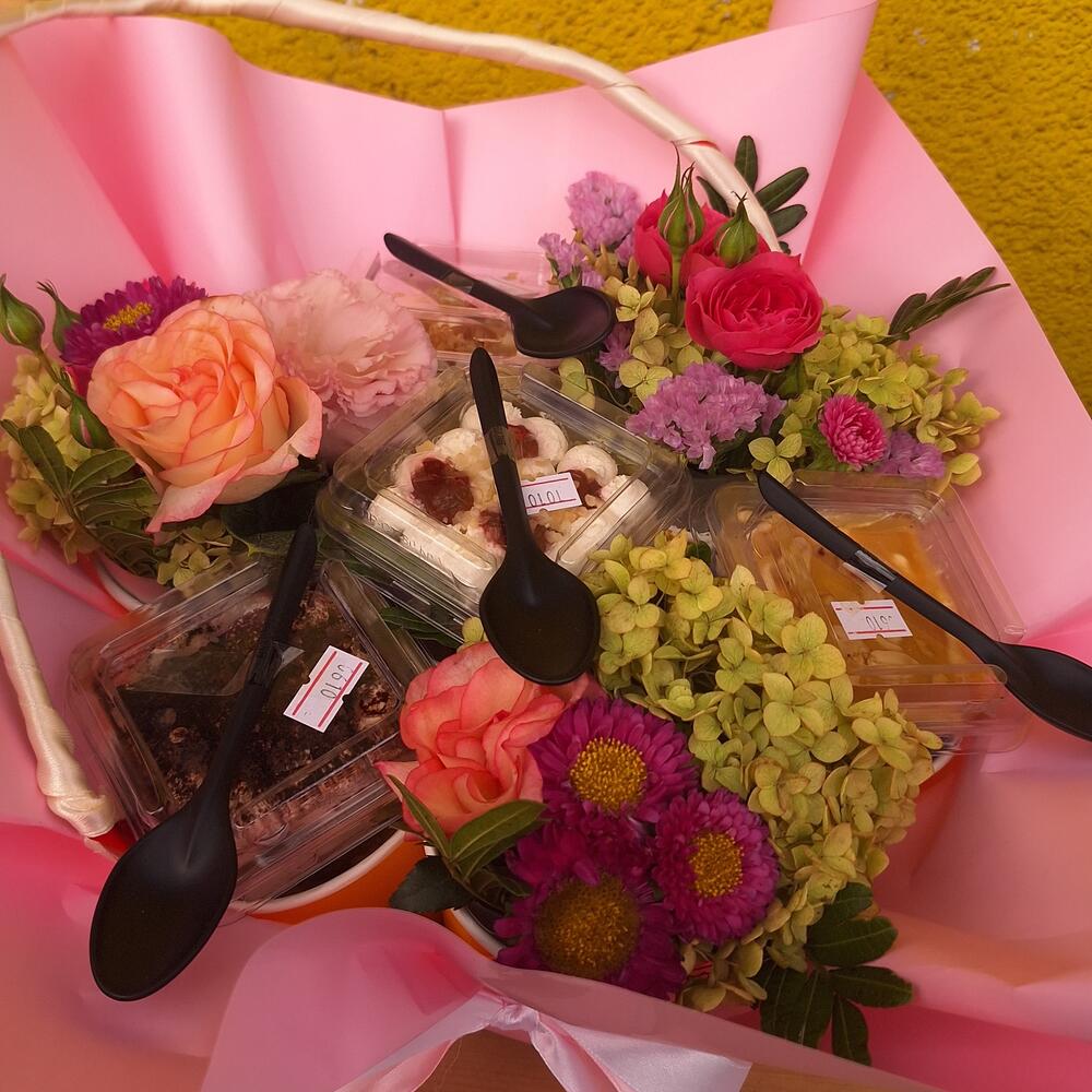 Оригинальный подарок — мини-букет в кофейном стакане с живыми цветами и десертом внутри. Композиция сочетает свежие розы, нежные лизиантусы, хризантемы и фирменный трайфл Fidelio. Идея для сюрприза, который объединяет эстетику, вкус и аромат.