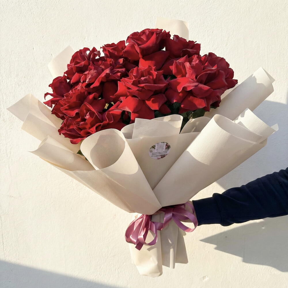 Очаровательный монобукет, состоящий из одиннадцати бордовых роз высотой 50 см, импортированных напрямую из Эквадора. Эти роскошные бутоны идеально сочетаются с изысканной мягкой упаковкой из фоамирана, которая включает в себя шесть элементов и придает букету завершенный элегантный вид. Дышите в согласии с нежным ароматом, способным украсить любое помещение и подарить чувство радости и счастья. Идеально подходит для выразительных знаков внимания, незабываемых подарков и ярких сюрпризов для любимых.