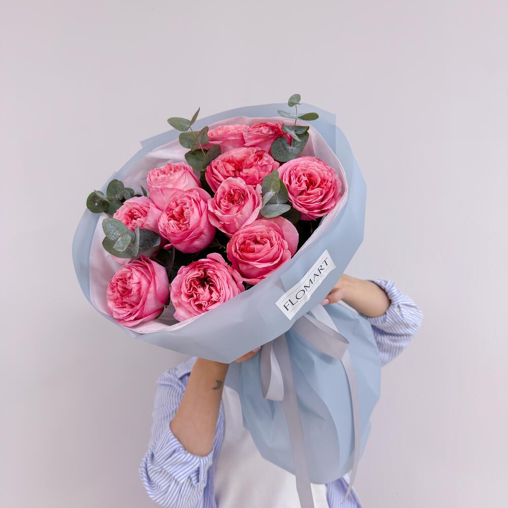 Эвкалипт - 1 шт. Пионовидная роза - 11 шт.