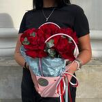 Эвкалипт - 1 шт. Французская роза - 5 шт. сумочка с ручками из плотного картона ламинированного - 1 шт.
