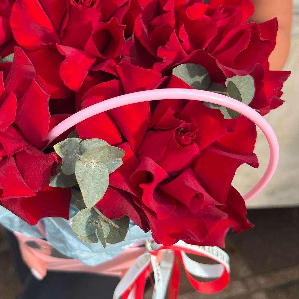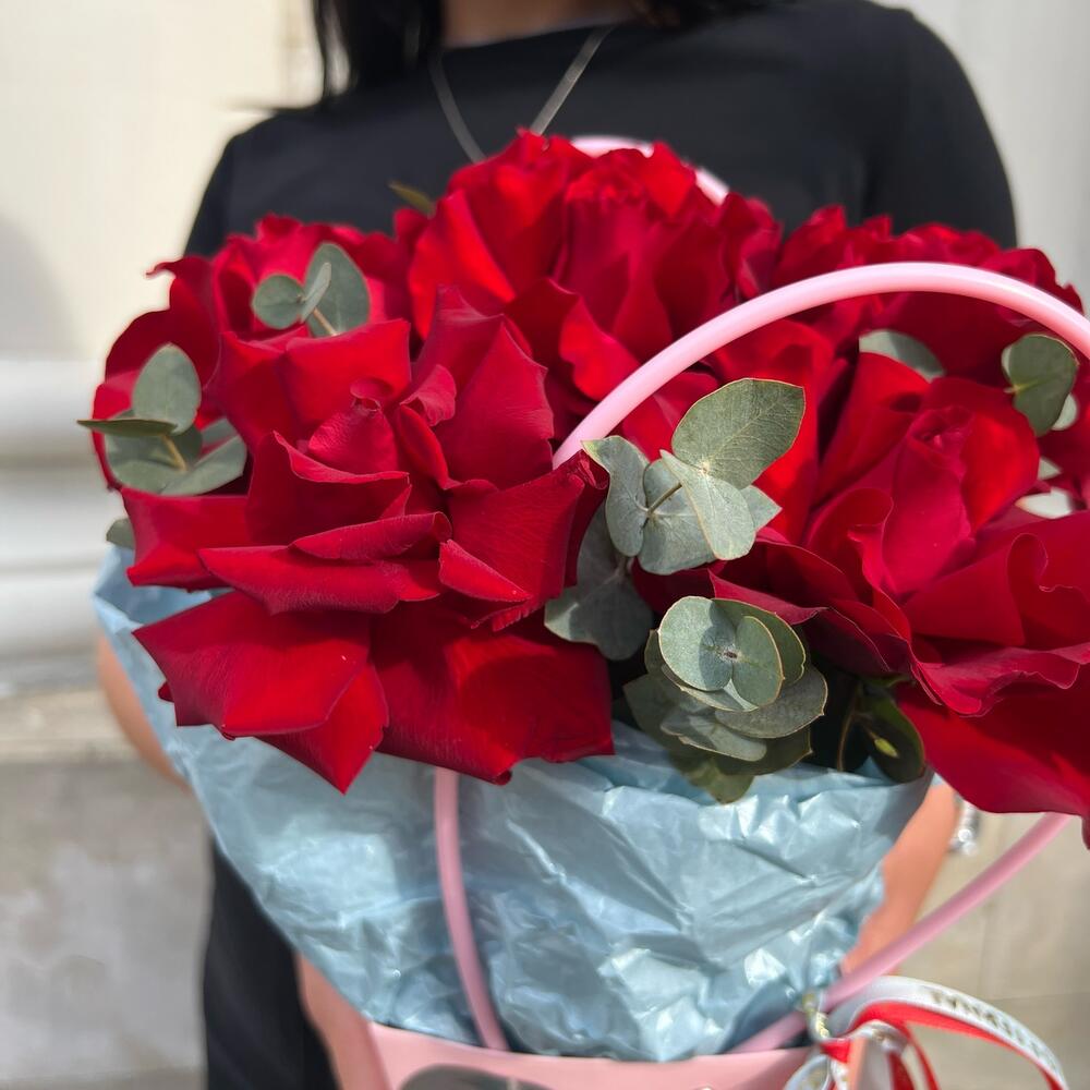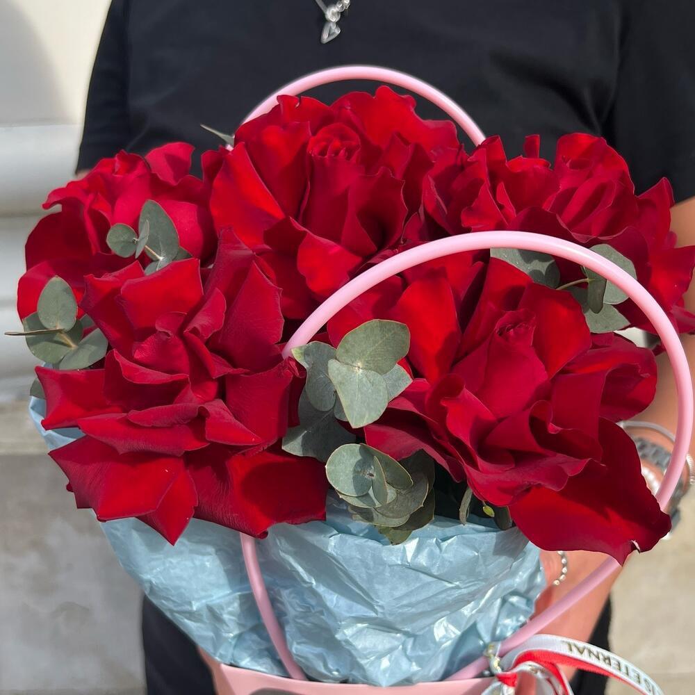 Эвкалипт - 1 шт. Французская роза - 5 шт. сумочка с ручками из плотного картона ламинированного - 1 шт.