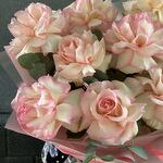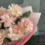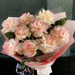 Эвкалипт - 4 шт. Лента атласная - 1 шт. бумага дизайнерская - 5 шт. розы эквадор - 9 шт.