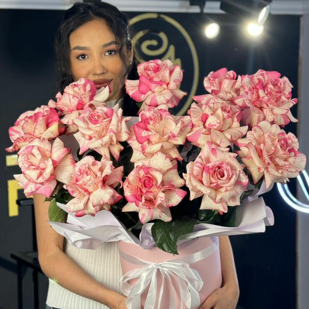 15 французских роза в коробке - 15 шт.