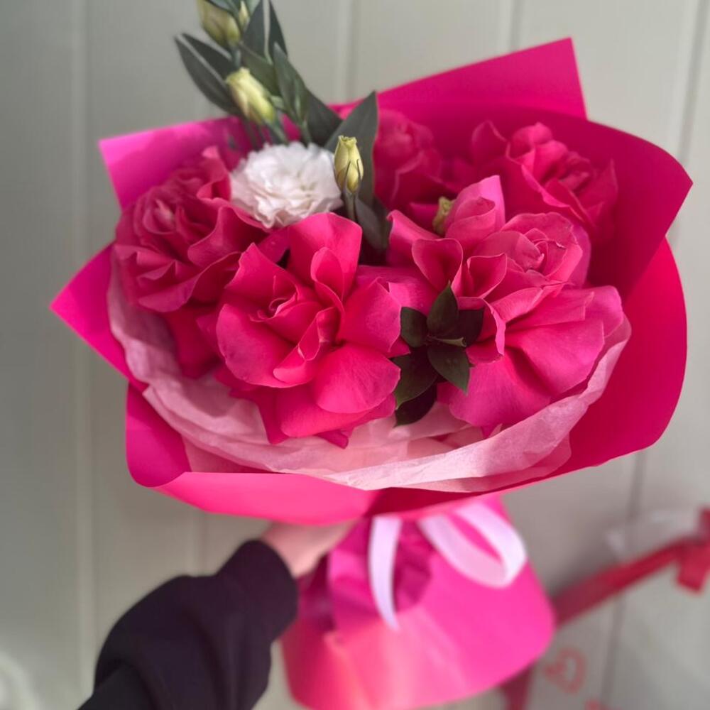 Рускус - 1 шт. эустома белая - 1 шт. французских рускусроза pink floyd - 5 шт.