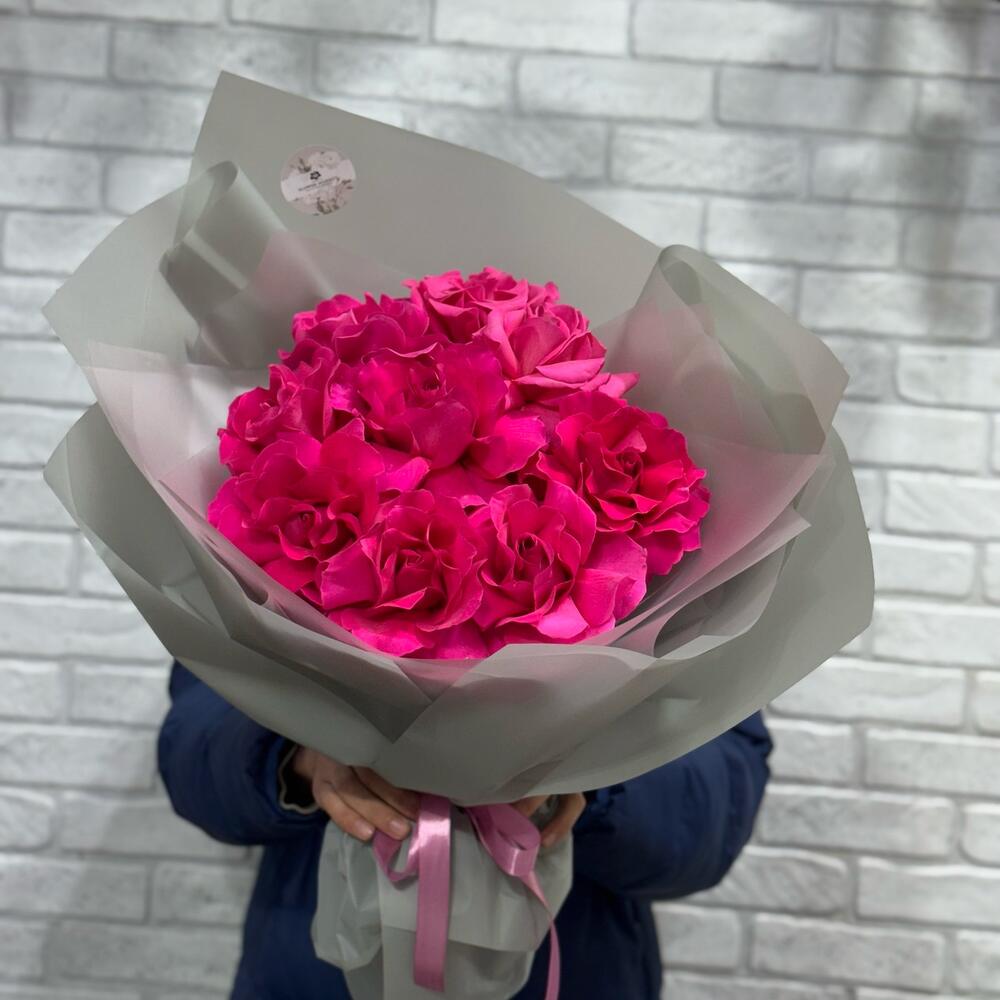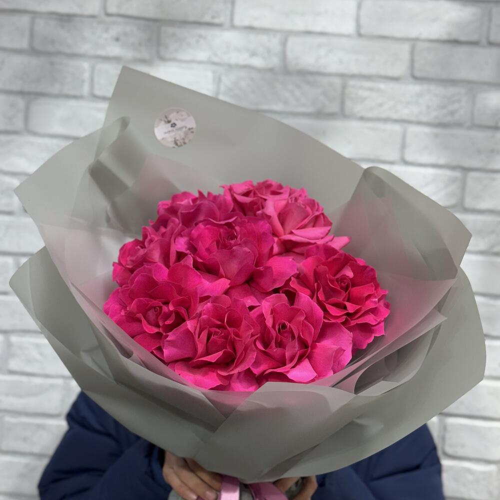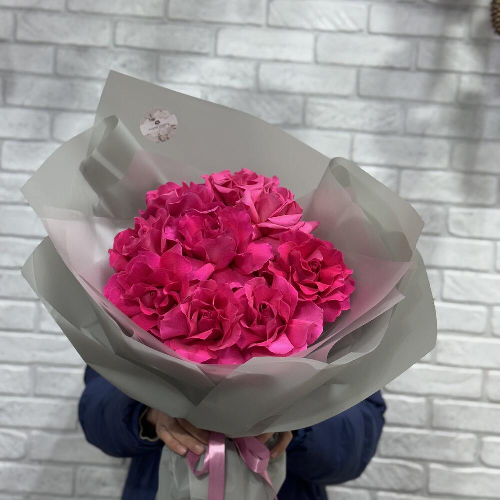 Бумага - 5 шт. Бант - 1 шт. Роза французская - 9 шт.