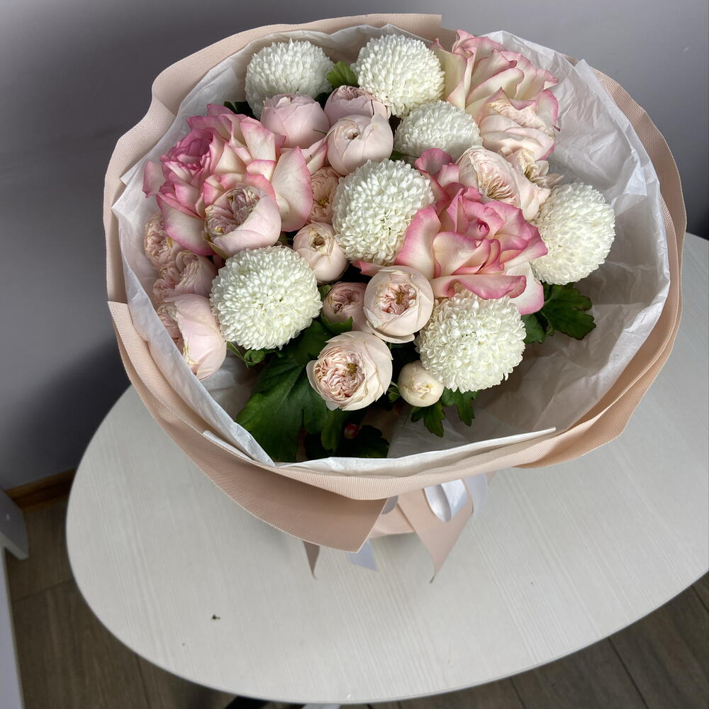 Французская роза - 3 шт. момоко хризантема - 6 шт. bombastic spray rose - 4 шт.