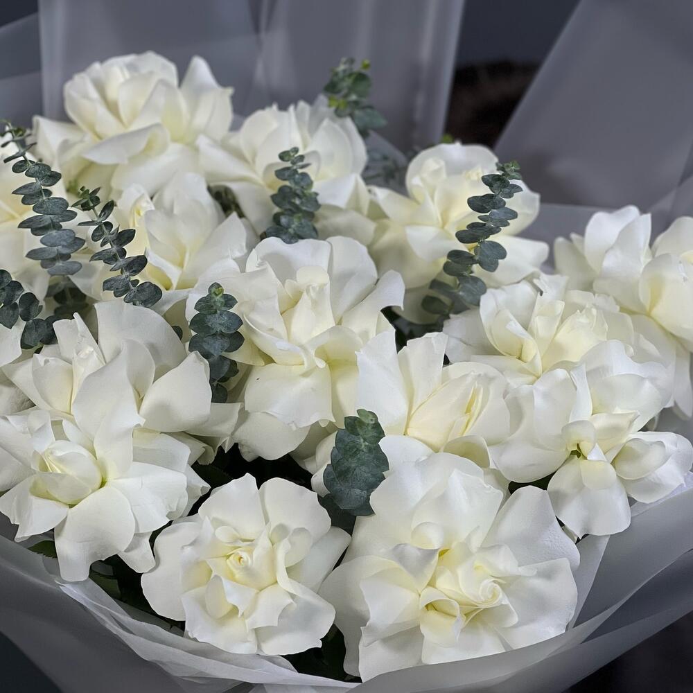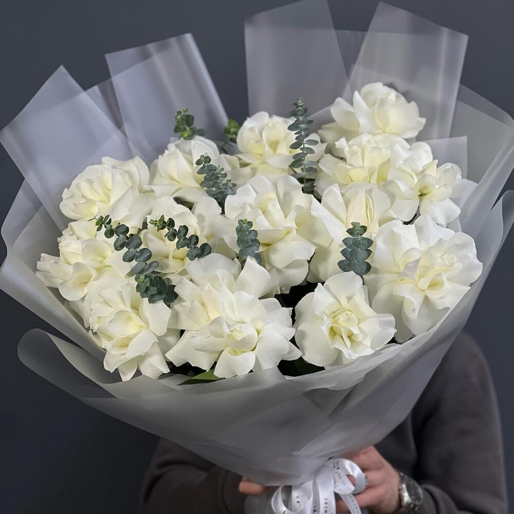 Букет французские розы с эвкалиптом