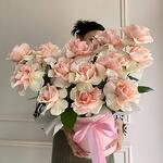 Коробка шляпная - 1 шт. Оазис флористический - 1 шт. французские розы - 13 шт.