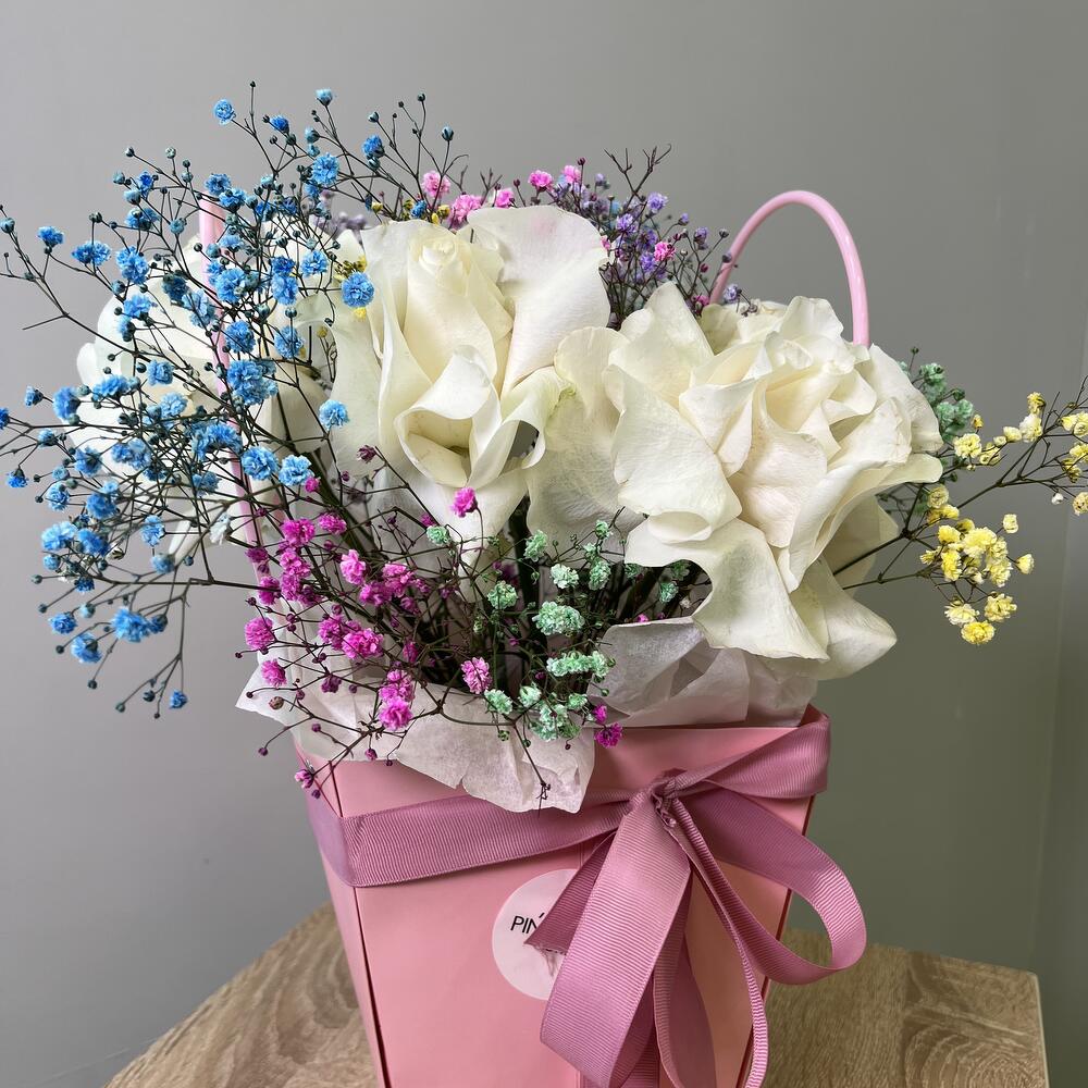 "Французские розы в коробке" от Pink Rose - это пленительное сочетание элегантности и страсти. 🌹 Каждая роза - это шедевр природы, тщательно упакованный в коробке, создавая атмосферу изыска и восхищения. 💖