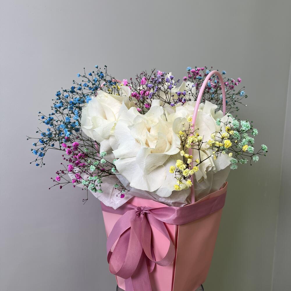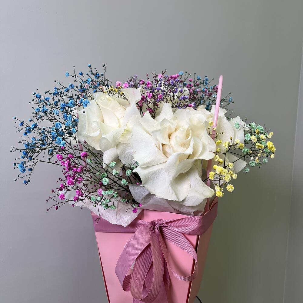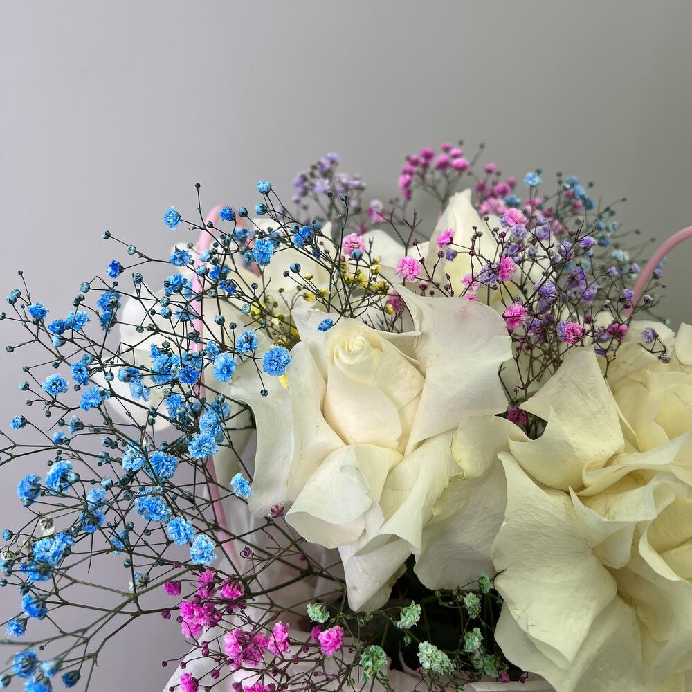 Гипсофила - 4 шт. французские розы - 3 шт.