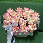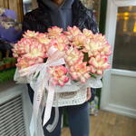 Корзина - 1 шт. Упаковка дизайнерская - 2 шт. Оазис флористический - 1 шт. Роза французская розовая - 19 шт.