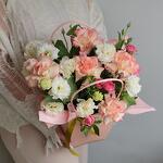 Роза - 5 шт. Эустома - 3 шт. Спрей роза - 1 шт.