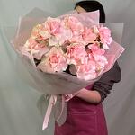 Невероятный пышный букет комплимент из французских роз. Букет выглядит очень эффектно и изысканно, а наша фирменная открытка дополнит ваше пожелание