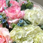 Гортензия - 2 шт. Эвкалипт - 1 шт. Твидия - 4 шт. розы - 5 шт. аква бумага - 1 шт.