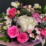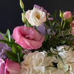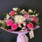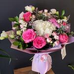 Гортензия - 1 шт. Лизиантус - 3 шт. Лимониум - 2 шт. Рускус - 4 шт. Статица - 3 шт. Хризантема кустовая - 1 шт. Роза - 5 шт. Фисташка - 3 шт. Оформление - 1 шт. Спрей роза - 3 шт. открытка с вашими пожеланиями - 1 шт.