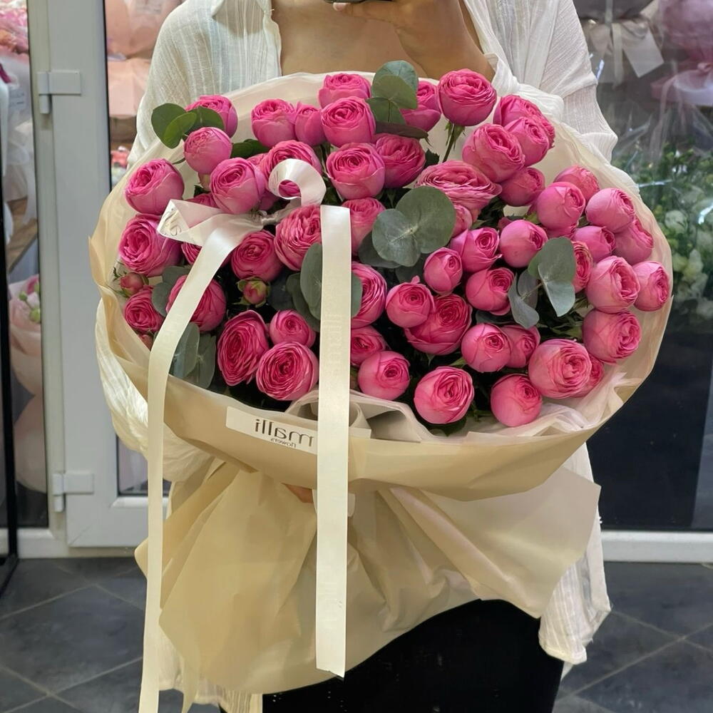 Кустовая пионовидная роза - 15 шт. Эвкалипт Цинерея - 1 шт.