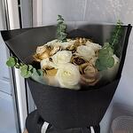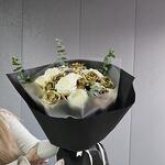 Эвкалипт - 4 шт. белые розы - 11 шт. золотые розы - 15 шт.