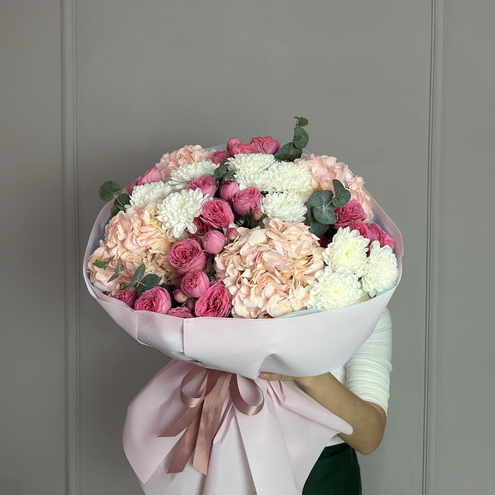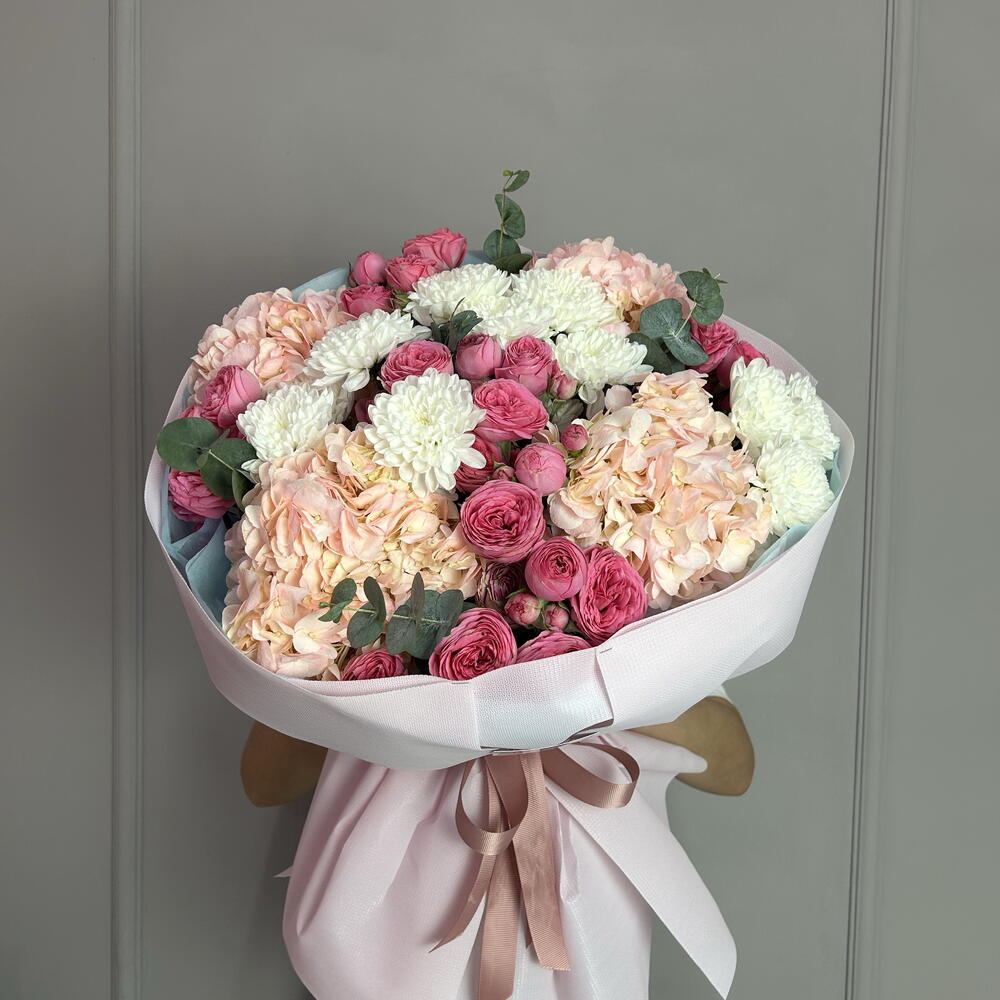 Гортензия - 4 шт. Роза кустовая - 5 шт. Хризантема кустовая - 4 шт.