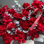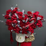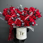 Голландская роза - 25 шт. Эвкалипт Микс - 19 шт. Тубус - 1 шт. Лента алтасная - 5 шт.