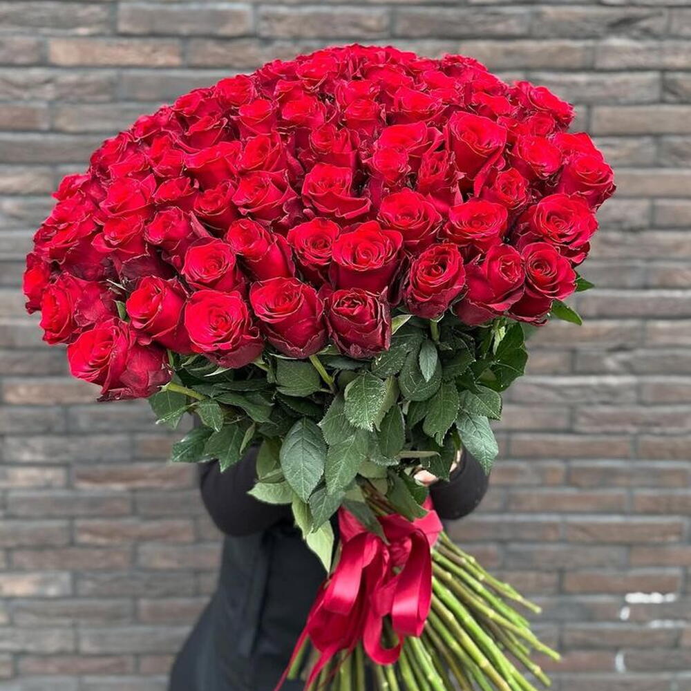 101 красная роза. Элегантный и универсальный букет для признания в любви, предложения или подарка на 14 февраля.