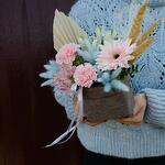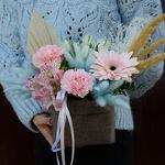 Альстромерия - 2 шт. Маттиола - 2 шт. Гвоздика - 2 шт. Лагурус - 1 шт. Мешочек - 1 шт. копье - 1 шт.