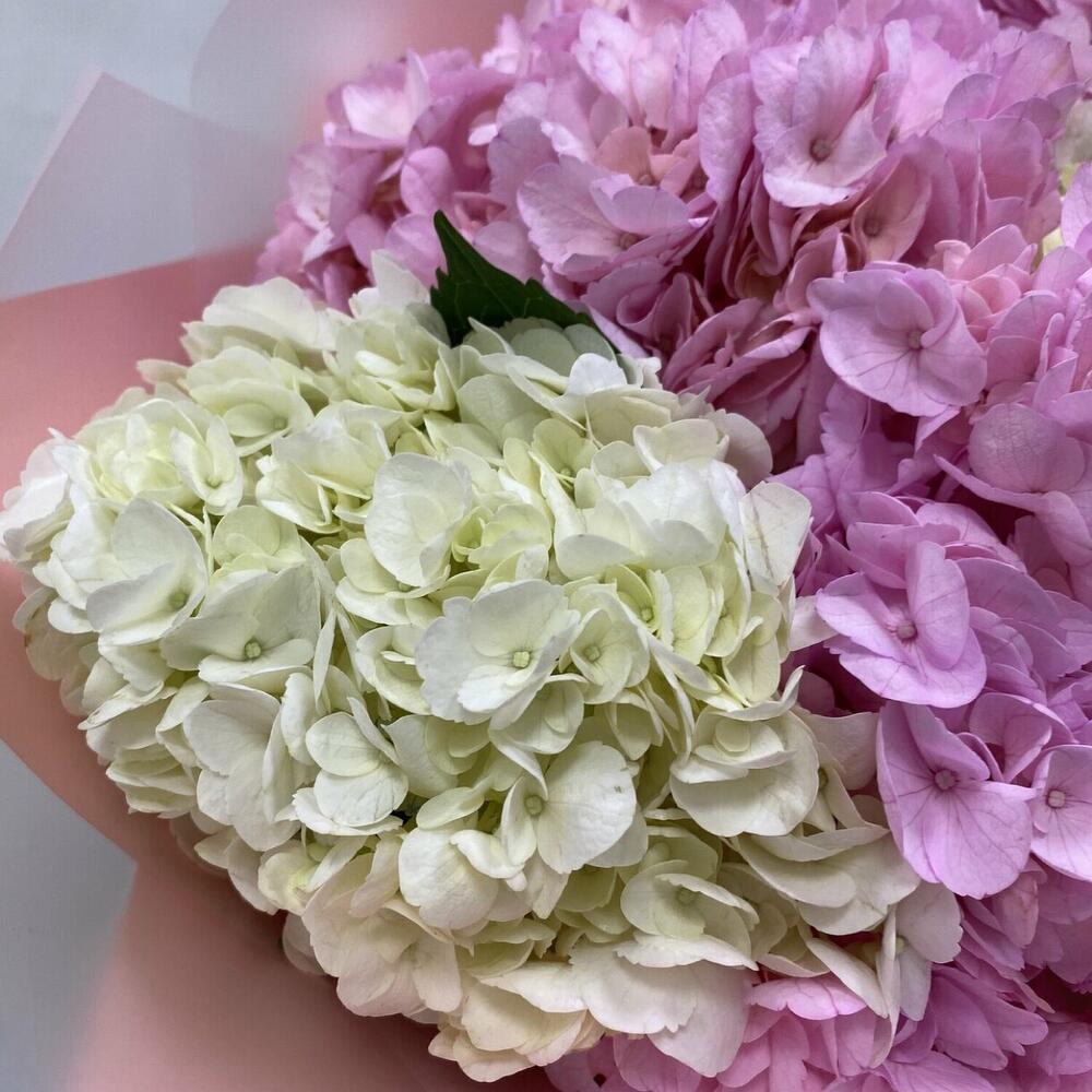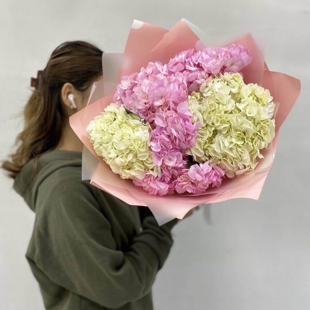 Этот утонченный букет содержит красивые гортензии (гидрангии) в различных оттенках. Они щедро совершенствуют друг друга и создают нежный и неповторимый образ. Букет упакован в элегантную дизайнерскую упаковку и украшен атласной лентой, что делает его идеальным подарком для любого случая. Указаны примерные размеры, чтобы вы могли представить внешний вид и масштаб, но фактически размеры могут немного отличаться.
