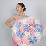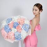 Этот роскошный букет из пышных гортензий в белых, голубых и нежно-розовых оттенках — словно облако из самых утончённых лепестков. Он идеально подойдёт для особых моментов, когда слова излишни, а красота цветов говорит сама за себя. Гармония пастельных тонов создаёт ощущение лёгкости, нежности и праздничного настроения. Такой букет станет великолепным акцентом на торжестве или подарком, который оставит самые тёплые воспоминания. Рекомендации по уходу: гортензии любят прохладную воду, поэтому рекомендуется менять её ежедневно и подрезать стебли под углом. Чтобы сохранить свежесть, держите букет вдали от прямых солнечных лучей и сквозняков.