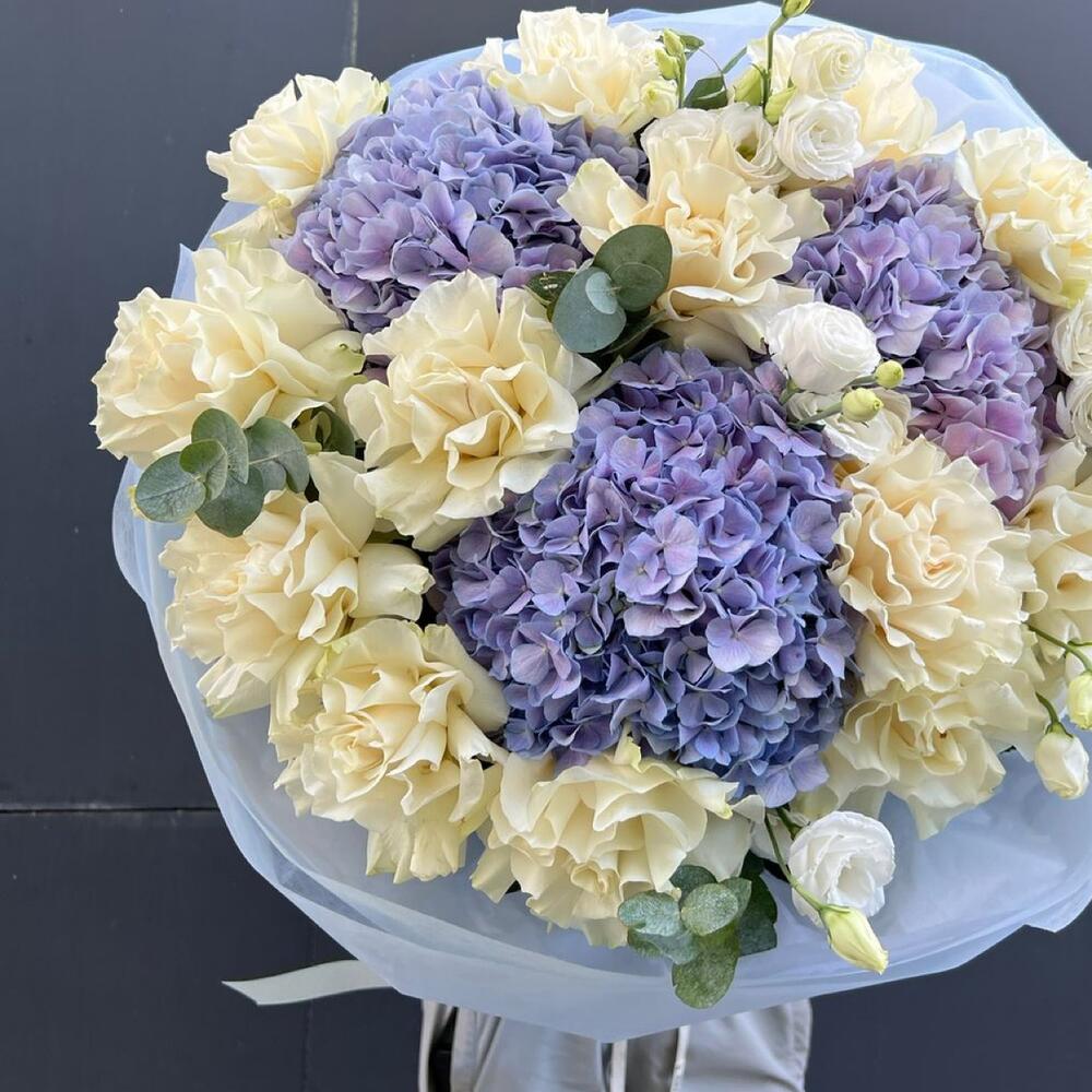 Гортензия - 3 шт. Роза - 15 шт. Эустома - 5 шт.