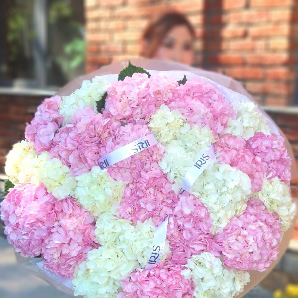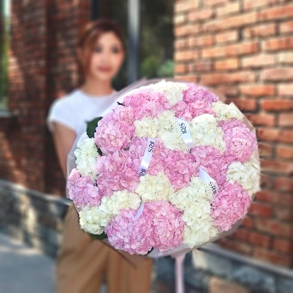 Нежный и воздушный букет из розовых и белоснежных гортензий выглядит по-настоящему величественно и празднично. Пышные соцветия создают облако красоты и легкости, которое невозможно не заметить. Такой букет станет роскошным подарком для свадьбы, дня рождения или признания в любви. Его утончённая цветовая гамма подчеркнёт изысканный вкус дарителя и оставит незабываемое впечатление. Чтобы гортензии дольше радовали своей свежестью, рекомендуется менять воду каждые 1–2 дня, подрезать стебли под углом и держать букет в прохладном месте, вдали от прямых солнечных лучей и отопительных приборов.