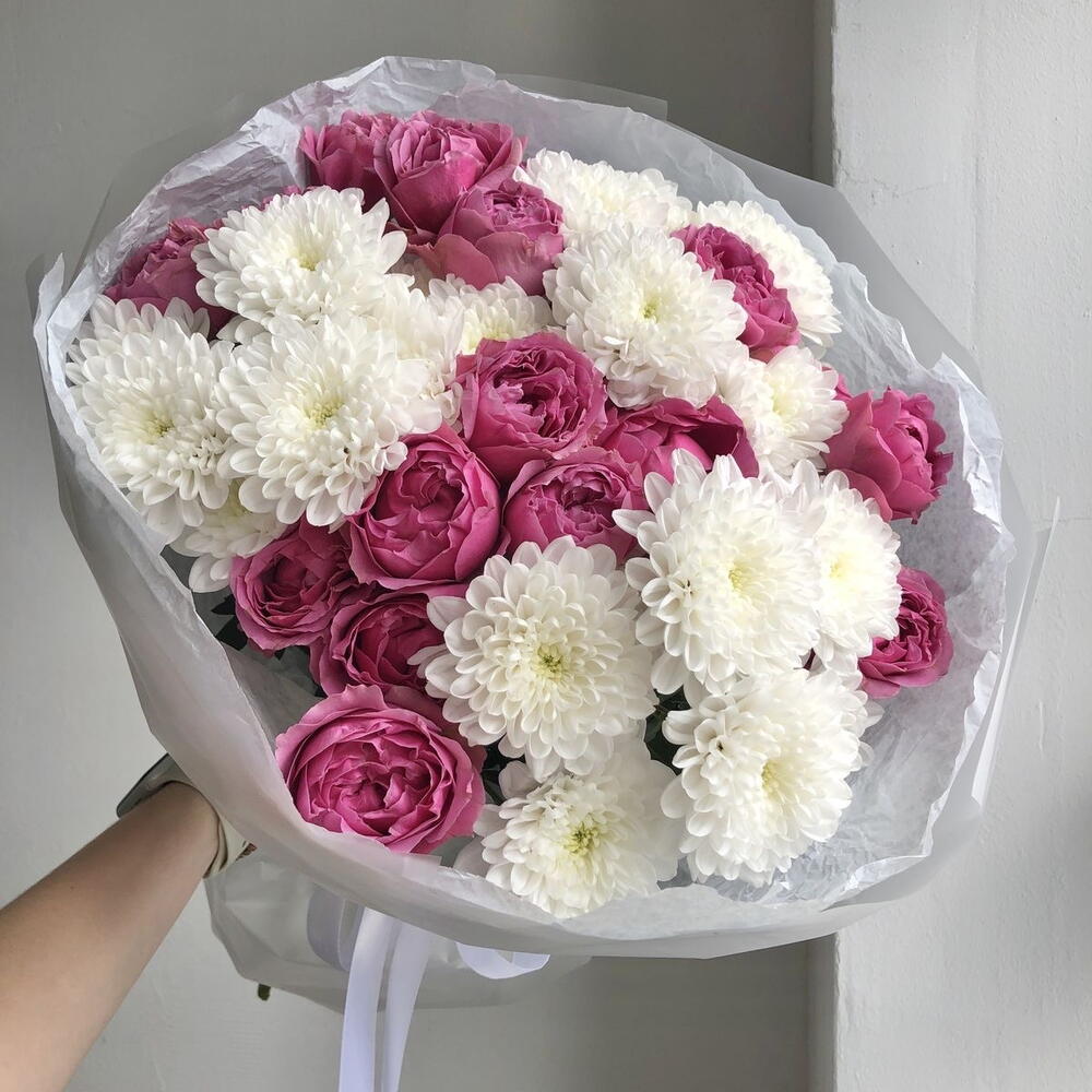 Кустовая роза - 5 шт. Кустовая хризантема - 5 шт.