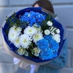Гортензия - 1 шт. Хризантема кустовая - 3 шт. Роза - 3 шт. Сантини - 1 шт. Фисташка - 1 шт.