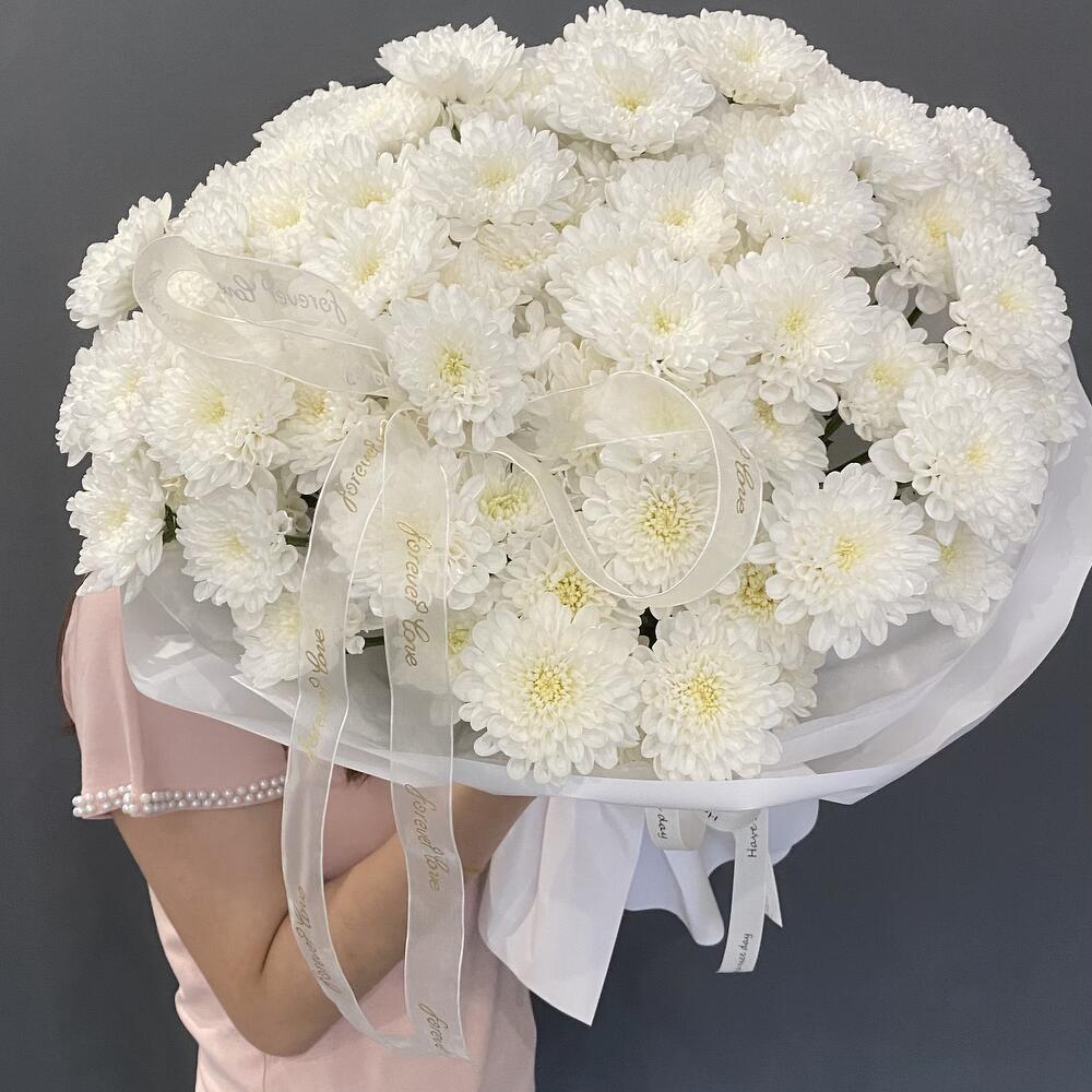 Роскошный монобукет, состоит из одиннадцати веток кустовой хризантемы. Каждый цветок живописно раскрыт, создавая чарующее цветочное облако. Этот букет станет прекрасным подарком для любого повода или просто для поднятия настроения.
