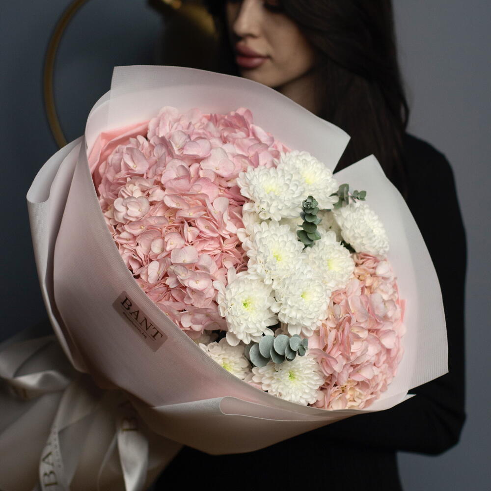 Хризантемы с гортензиями розовыми