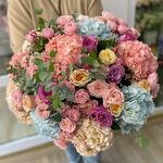 Гортензия - 1 шт. Эвкалипт - 1 шт. Кустовая роза - 1 шт. Пионовидная роза - 1 шт.