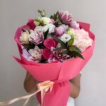Гортензия - 1 шт. Лилия - 3 шт. Эустома - 3 шт. Упаковка дизайнерская - 10 шт. роза кустовая премиум - 3 шт.