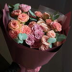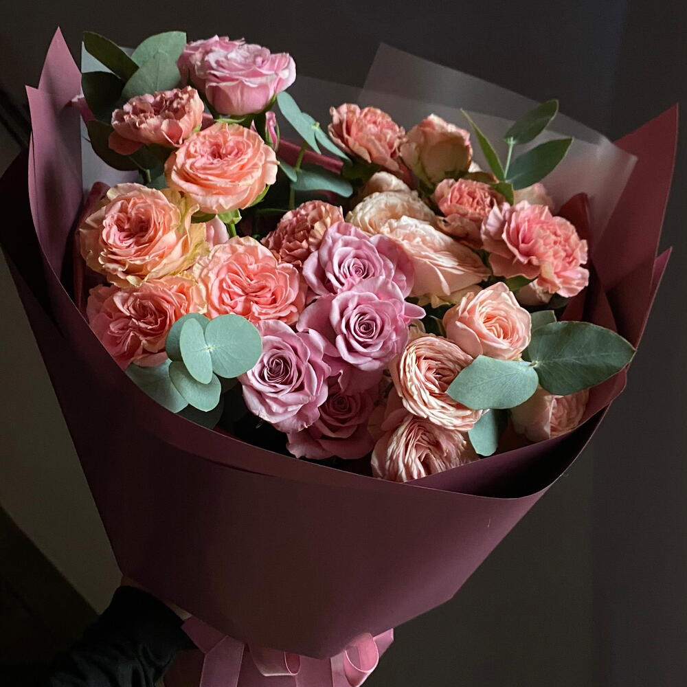 Кустовая роза - 5 шт. Диантус - 5 шт. Эвкалипт Микс - 1 шт.