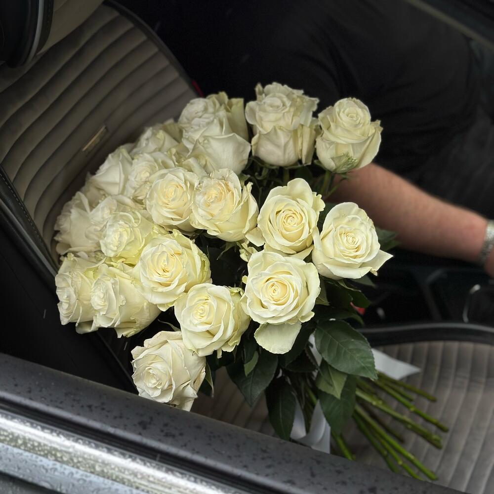 Упаковка - 1 шт. Роза Мондиаль - 25 шт. Аквабокс - 1 шт. переноска для цветов - 1 шт.