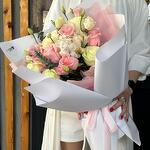 Альстромерия - 2 шт. Эвкалипт - 2 шт. Роза - 9 шт. Эустома - 4 шт.