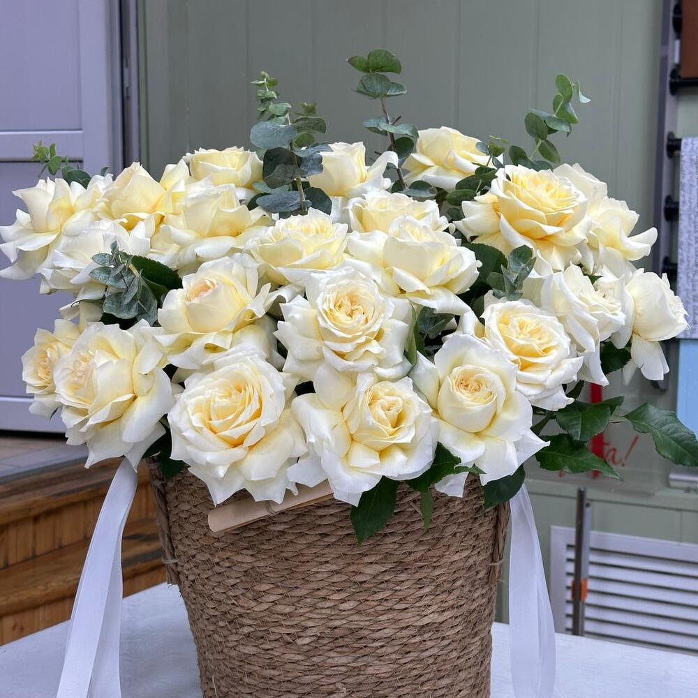 Эвкалипт Baby Blue - 2 шт. розы белые эквадор - 25 шт.